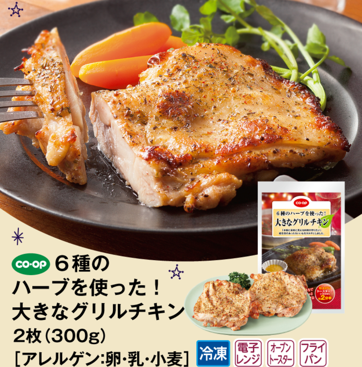 チキンはすでに下ごしらえ済みなので、電子レンジで温めてフライパンで焼き目をつけるだけで完成します。