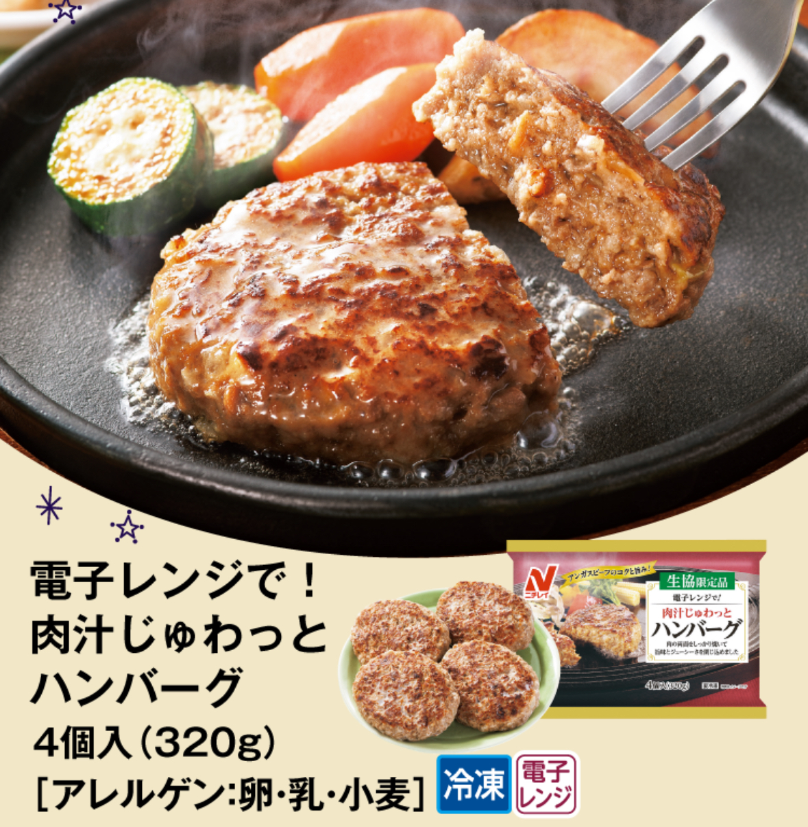 こちらのハンバーグは、手軽さと本格的な味わいを両立した一品です。冷凍のままラップをせずに電子レンジで温めるだけで、ふっくらジューシーに仕上がります。